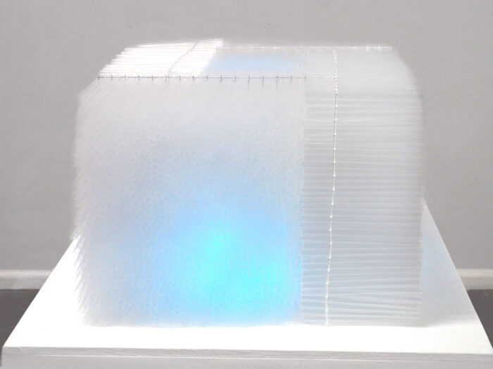 Block • 2025 Transparent straws, steelmesh, LED´s, 30 x 40 x 40 cm