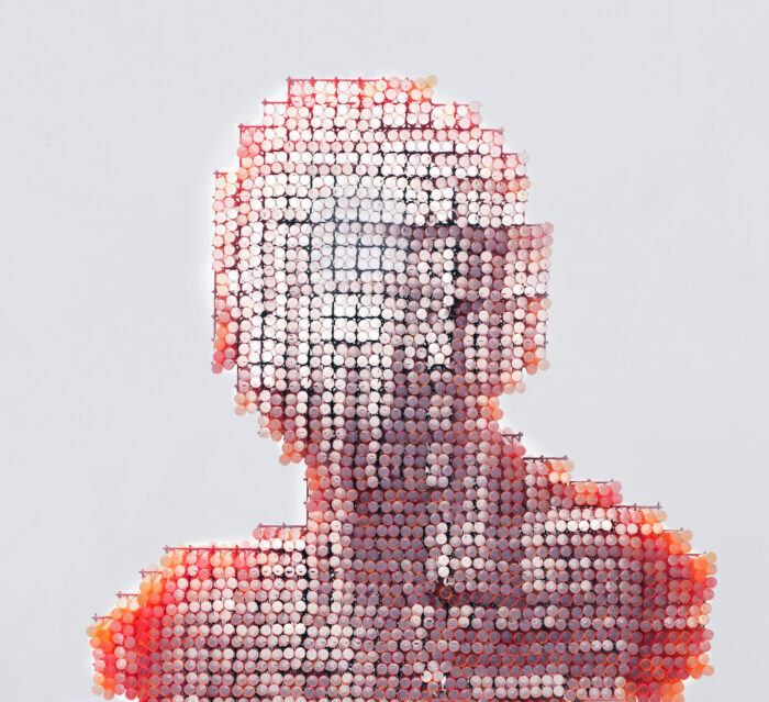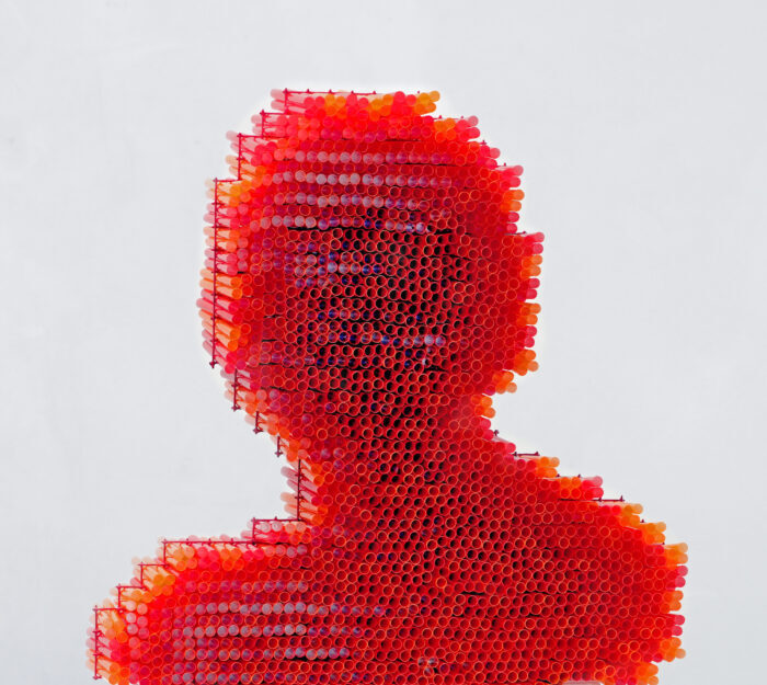 See Me • 2024 Orange and red straws, steelmesh, 47 x 43 x 13 cm