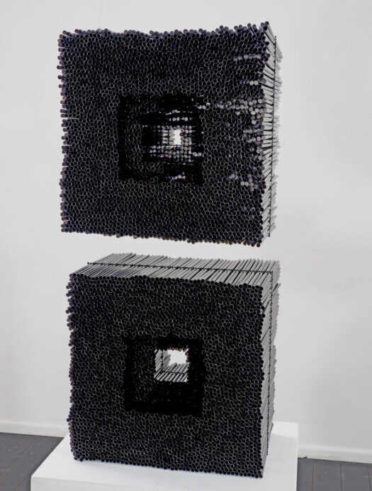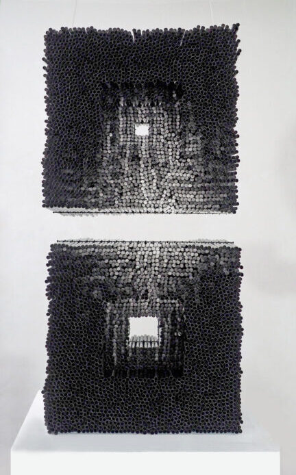 Windows • 2025 Black straws, steelmesh, two parts each 40 x 40 x 30 cm