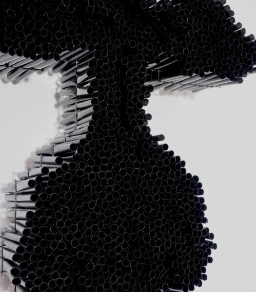 - Gravitiy of Light (Detail) • 2025 Black straws, steelmesh, 80 x 37 x 13 cm