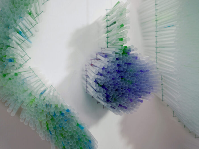 - Hope (Detail) • 2024 Transparent, green and blue straws, steelmesh, 98 x 48 x 25 cm
